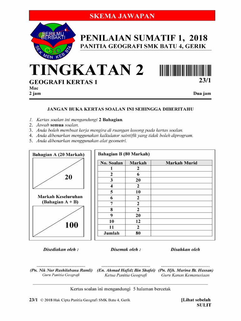 Soalan Peperiksaan Pertengahan Tahun 2018 Kssm Tingkatan 2 Geografi